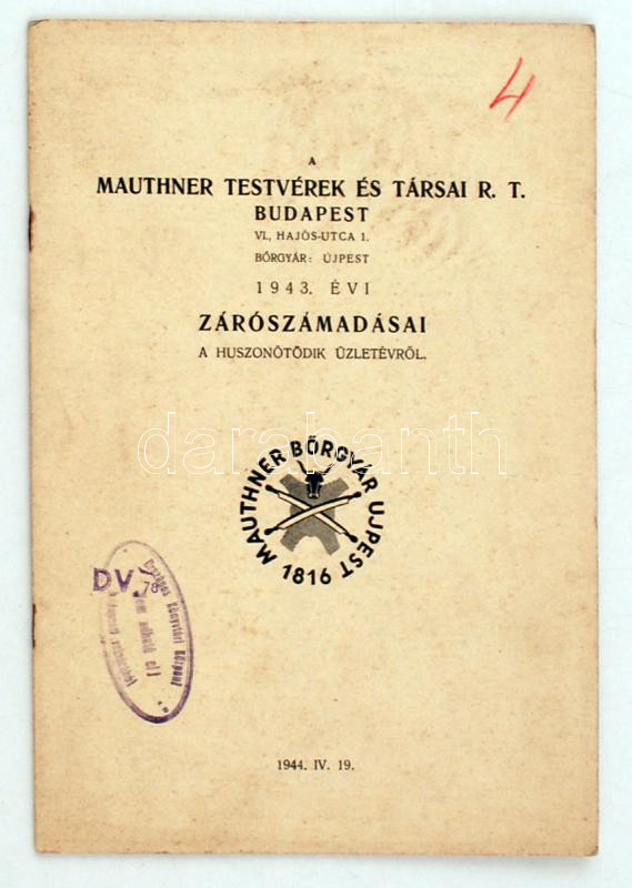 1944 Mauthner Bőrgyár Ujpest 1816, Zárszámadásai a huszonötödik üzleté... https://www.darabanth.com/de/265-Fernauktion/265.0/Andere-Sammelgebiete/Drucksachen~200295/1944-Mauthner-Borgyar-Ujpest-1816-Zarszamadasai-a-huszonotodik-uzletevrol-pp12-23x15c~II1329432