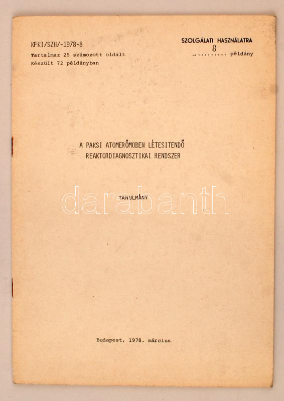 A paksi atomerőműben létesítendő reaktordiagnosztikai rendszer. Tanulmány. Bp., 1978, KFKI. 25 p. Mindössze 72 példányban kiadott, belső használatra szánt kézirat.