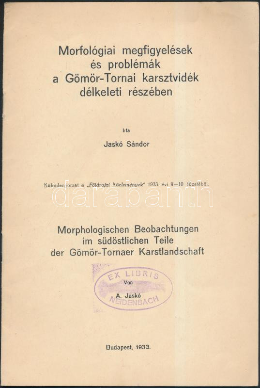 Jaskó Sándor: Morfológiai megfigyelések és problémák a Göör-Tornai kar... https://www.darabanth.com/de/265-Fernauktion/265.0/Andere-Sammelgebiete/Drucksachen~200295/Jasko-Sandor-Morfologiai-megfigyelesek-es-problemak-a-Goor-Tornai-karsztvidek-delkeleti-~II1263769