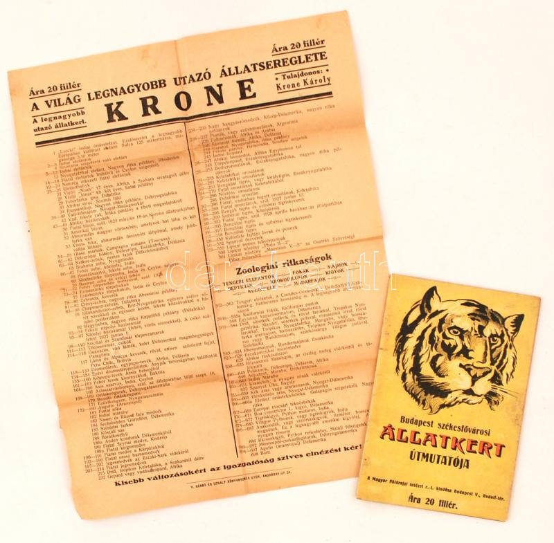 Beschreibung: cca 1910-20 Budapest székesfővárosi állatkert útmutatója, pp.:16, térképpel , 15x10cm+ Krone, Legnagyobb utazó állatkert nyomtatvány, 31x23cm