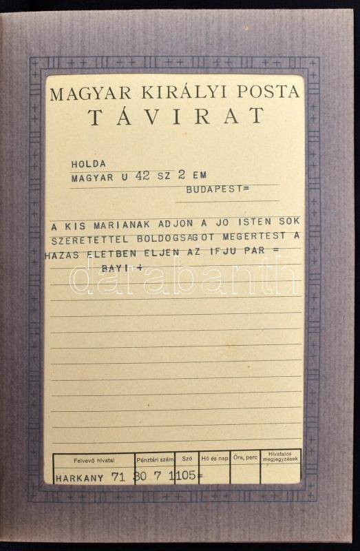 cca 1930-40 Dísztáviratok, 2db, 24x16cm https://www.darabanth.com/de/265-Fernauktion/265.0/Andere-Sammelgebiete/Drucksachen~200295/cca-1930-40-Disztaviratok-2db-24x16cm~II1327374