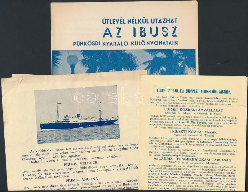 cca 1930-40 Fiume, Abbazia ismertető nyomtatványok, 3db különböző mére... https://www.darabanth.com/de/265-Fernauktion/265.0/Andere-Sammelgebiete/Drucksachen~200295/cca-1930-40-Fiume-Abbazia-ismerteto-nyomtatvanyok-3db-kulonbozo-meretben-es-minosegben~II1263932