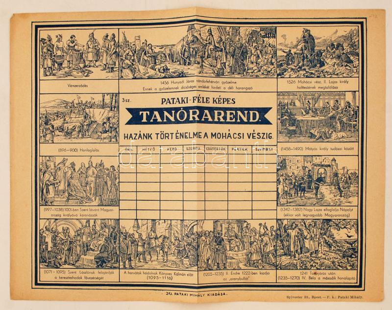 cca 1940 Pataki-féle tanórarend, használatlan, 24x32 cm https://www.darabanth.com/de/265-Fernauktion/265.0/Andere-Sammelgebiete/Drucksachen~200295/cca-1940-Pataki-fele-tanorarend-hasznalatlan-24x32-cm~II1322797