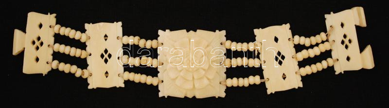 Beschreibung: Csont karkötő virágos motívummal, hiányos kapoccsal, h: 19 cm