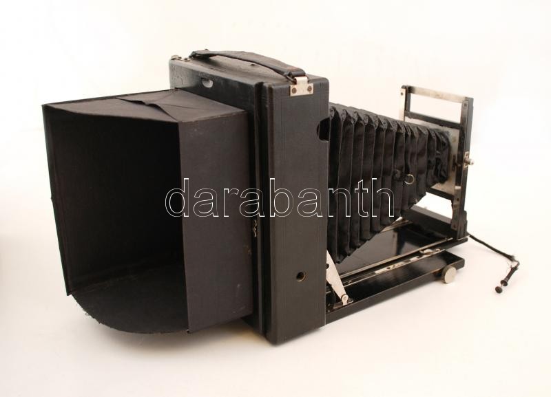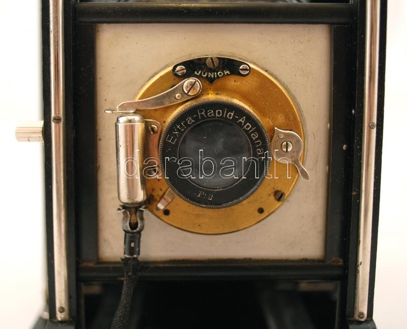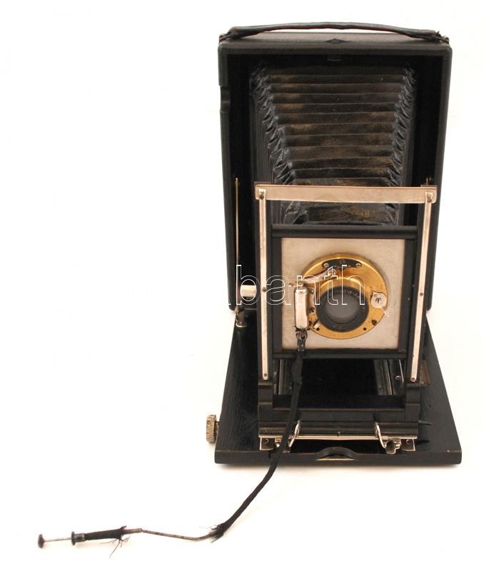 XIX. sz. vége: Ejtőlemezes kamera fényképezőgép Wollensak Rochester Extra Rapi Aplanat F:8 objektívvel 2 fakazettával, tokkal. / Vintage camera with two wooden casette