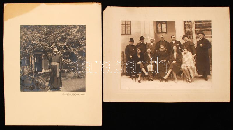 Beschreibung: 1930-38 Egyházi és világi társaság, köztük Káplán tábori lelkész is,fotók kartonra kasírozva, 2db, 17x23cm és 16x17cm