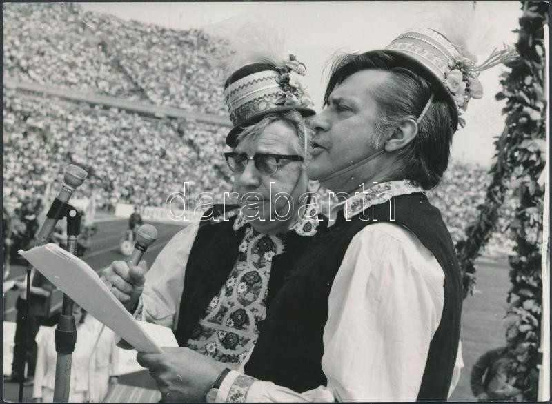 Beschreibung: Csákányi László és Agárdi gábor az egyik Színészek Újsgágírók Rangadóján a Népstadionban, 13x18 cm