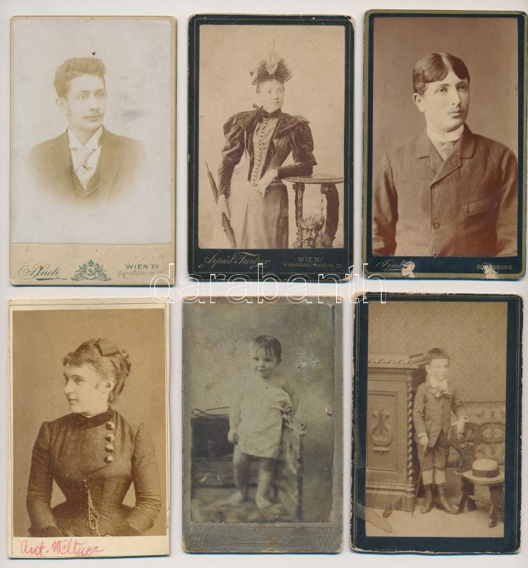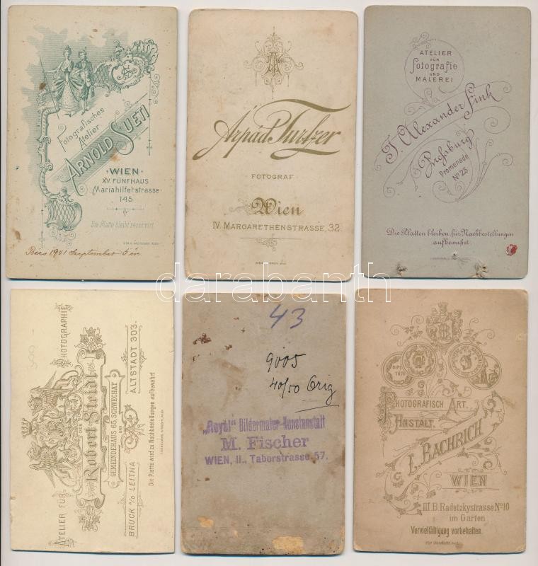 cca 1860-1890 Korabeli, keményhátú családi fotók, 6db,különböző bécsi műtermekből: Sueti,Plurlzer, Fink, Bachrich, Fischer, Steidl,(cca10x6cm