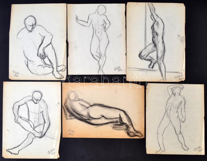 Albert jelzéssel: Akt vázlatok. 6 db, szén, papír, jelzett, 30x21 cm https://www.darabanth.com/de/265-Fernauktion/265.0/Andere-Sammelgebiete/Gemalde-und-Grafiken~1/Albert-jelzessel-Akt-vazlatok-6-db-szen-papir-jelzett-30x21-cm~II1325654