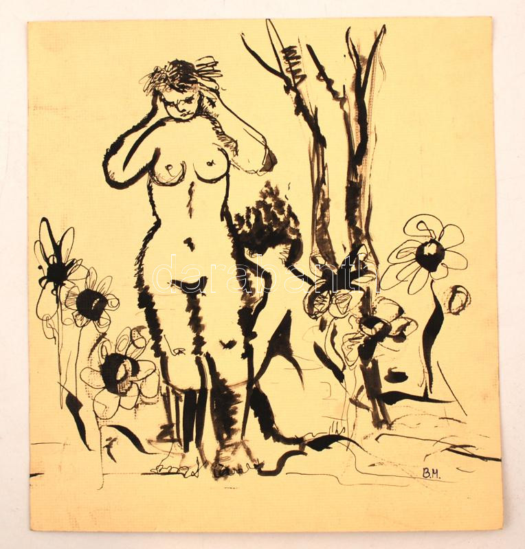 BM jelzéssel: Női akt. Tus, papír, 29×26 cm https://www.darabanth.com/de/265-Fernauktion/265.0/Andere-Sammelgebiete/Gemalde-und-Grafiken~1/BM-jelzessel-Noi-akt-Tus-papir--29C39726-cm~II1330228