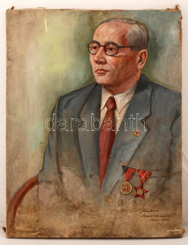 Beschreibung: Götz jelzéssel: Elvtárs. Olaj, vászon, sérült, 70×50 cm