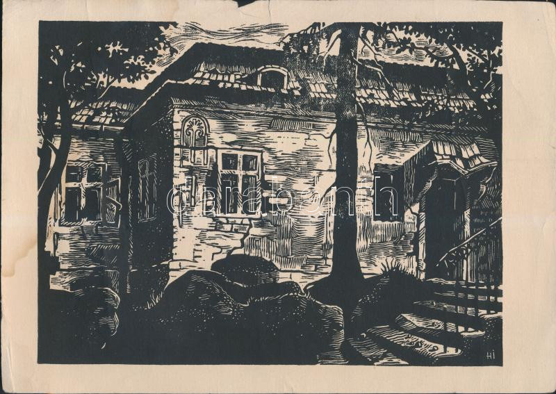 HI jelzéssel: Ház részlet. Fametszet, papír, 17×25 cm https://www.darabanth.com/de/265-Fernauktion/265.0/Andere-Sammelgebiete/Gemalde-und-Grafiken~1/HI-jelzessel-Haz-reszlet-Fametszet-papir-17C39725-cm~II1234502