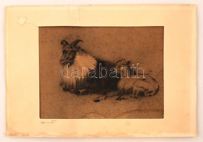Beschreibung: HS jelzéssel: Kecskecsalád, rézkarc, papír, paszpartuban, 19,5×26,5 cm