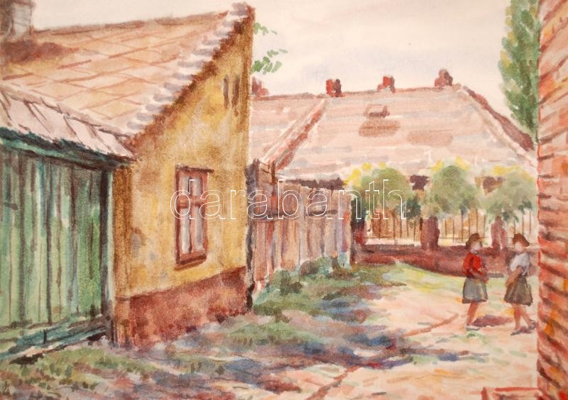 Jelzés nélkül: Faluban. Akvarell, papír, kartonra kasírozva, 23x28 cm https://www.darabanth.com/de/265-Fernauktion/265.0/Andere-Sammelgebiete/Gemalde-und-Grafiken~1/Jelzes-nelkul-Faluban-Akvarell-papir-kartonra-kasirozva-23x28-cm~II1277316