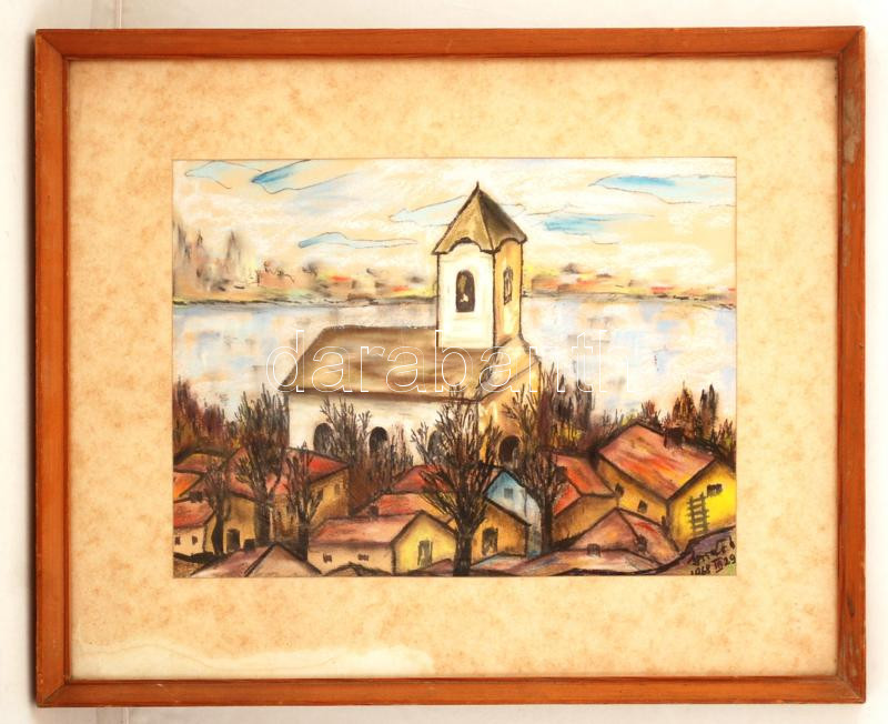 Olvashatatlan jelzéssel: Templom házakkal. Pasztell, papír, 28×39 cm https://www.darabanth.com/de/265-Fernauktion/265.0/Andere-Sammelgebiete/Gemalde-und-Grafiken~1/Olvashatatlan-jelzessel-Templom-hazakkal-Pasztell-papir-28C39739-cm~II1281603