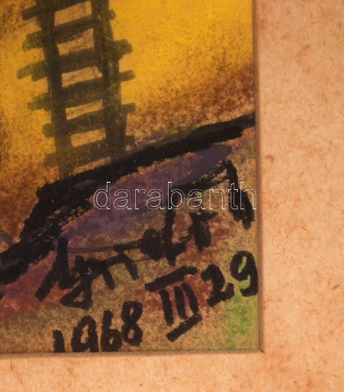 Beschreibung: Olvashatatlan jelzéssel: Templom házakkal. Pasztell, papír, 28×39 cm