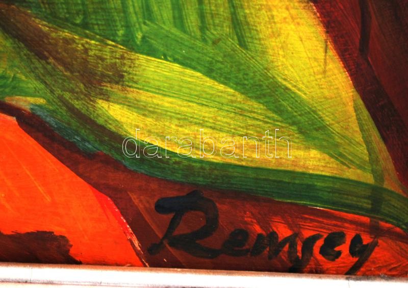 Beschreibung: Remsey jelzéssel: Fellépés után. Olaj, karton, keretben, sérült, keretben, 80×60 cm