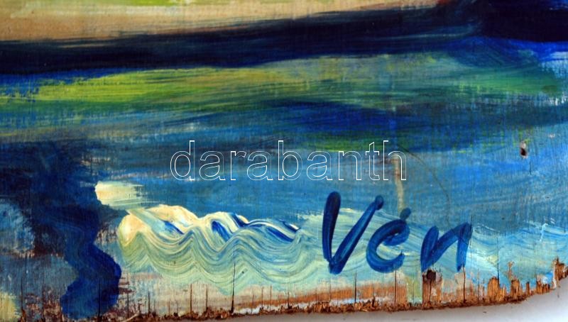 Beschreibung: Vén jelzéssel: Vitorlások a kikötőben. Olaj, fa lemez, sérült, 64×65 cm