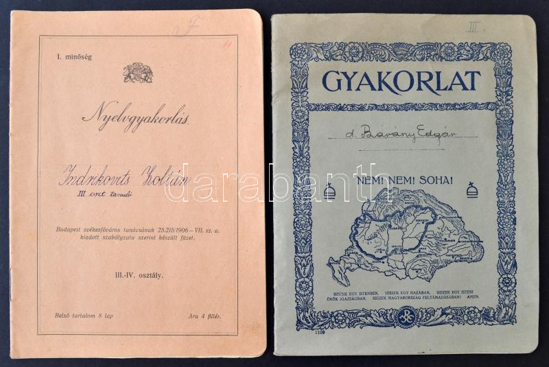 cca 1930-1940 Iskolai füzetek, 2 db, az egyiken a "Nem! Nem! Soha!" irredenta jelmondattal