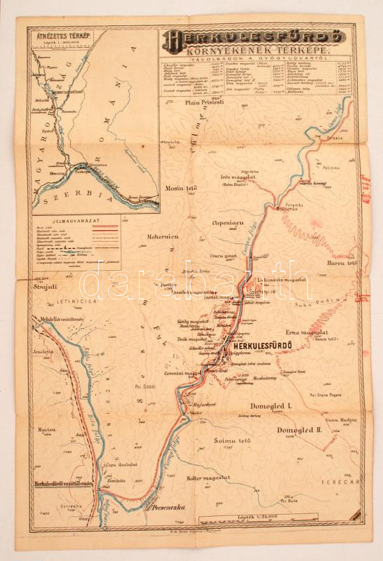 1907 Herkulesfürdő környékének térképe, 1:25000, hajtás mentén kis sza... https://www.darabanth.com/de/265-Fernauktion/265.0/Andere-Sammelgebiete/Landkarten~26/1907-Herkulesfurdo-kornyekenek-terkepe-125000-hajtas-menten-kis-szakadassal--47x31cm~II1327579