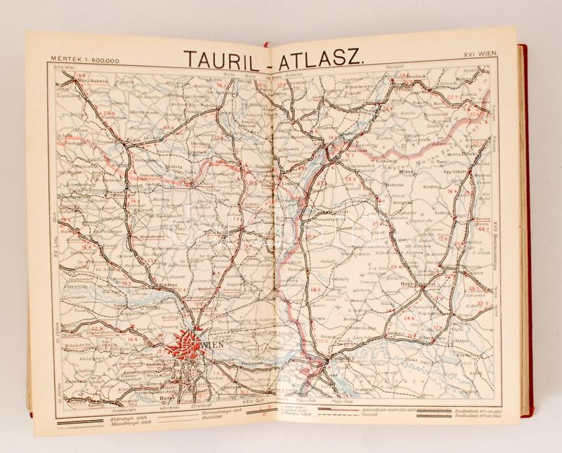 Tauril-Atlasz I. kötet. Az Osztrák-Magyar Monarchia automobil-térképe. Mérték: 1:600000. Bp., (1910), Tauril-Pneumatik. Kiadói egészvászon kötés, gerince kívül kissé viseltes