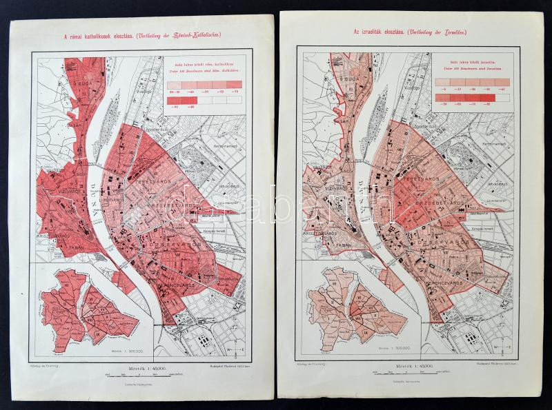 cca 1905 A római katholikusok és az ízraeliták eloszlása Budapesten, t... https://www.darabanth.com/de/265-Fernauktion/265.0/Andere-Sammelgebiete/Landkarten~26/cca-1905-A-romai-katholikusok-es-az-izraelitak-eloszlasa-Budapesten-terkep-Korosy-es-Thi~II1326916