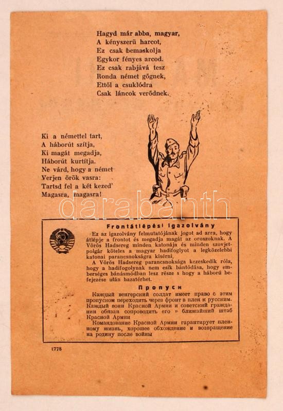 cca 1942 Magyar! Ezt jól megrágd! magyar nyelvű szovjet háborús röplap... https://www.darabanth.com/de/265-Fernauktion/265.0/Andere-Sammelgebiete/Militaria~25/cca-1942-Magyar-Ezt-jol-megragd-magyar-nyelvu-szovjet-haborus-roplap-20x13cm~II1329057