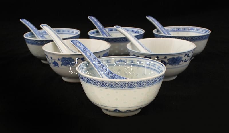 Beschreibung: 4+2 db kínai porcelán evőtálka, jelzettek, kopásnyomokkal, d: 11,5 cm + 4+2 db kínai porcelán kanál, jelzettek, apró kopásnyomokkal, h: 14 cm