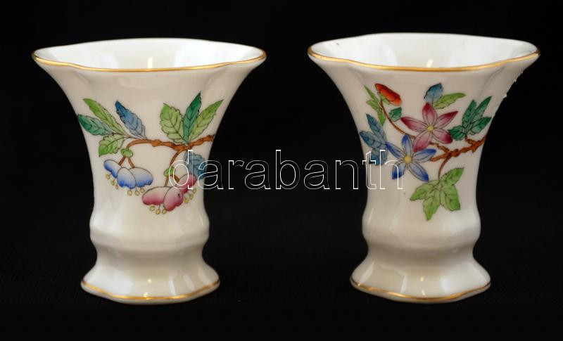 Beschreibung: Herendi Viktória mintás fogpiszkálótartó, kézzel festett, jelzett (koronás), hibátlan, m:6,5 cm (2×)