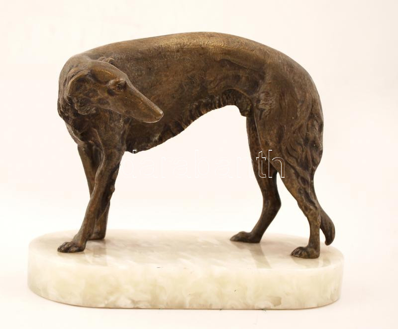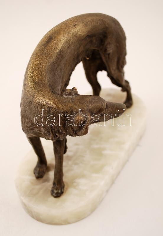 Beschreibung: Jelzés nélkül: Figyelő agár. Bronz, alabástrom talapzaton, h:21 cm, m:15 cm