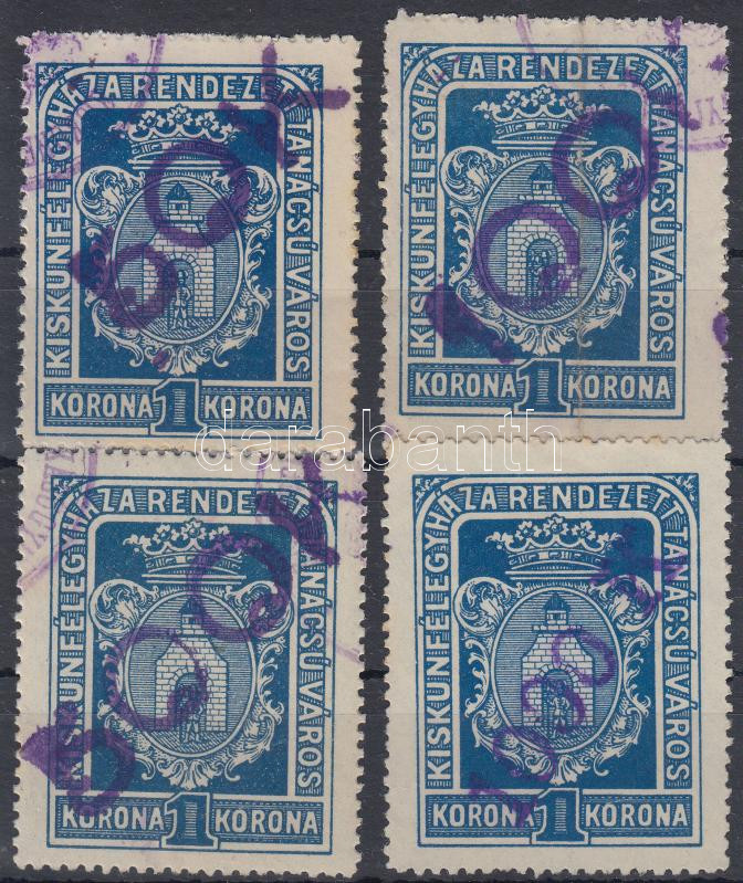 1923 4 db Kiskunfélegyháza városi illetékbélyeg felülnyomással (~53.00... https://www.darabanth.com/de/265-Fernauktion/265.0/Andere-Sammelgebiete/Stempelmarken~15/1923-4-db-Kiskunfelegyhaza-varosi-illetekbelyeg-felulnyomassal-7E53000~II1329090
