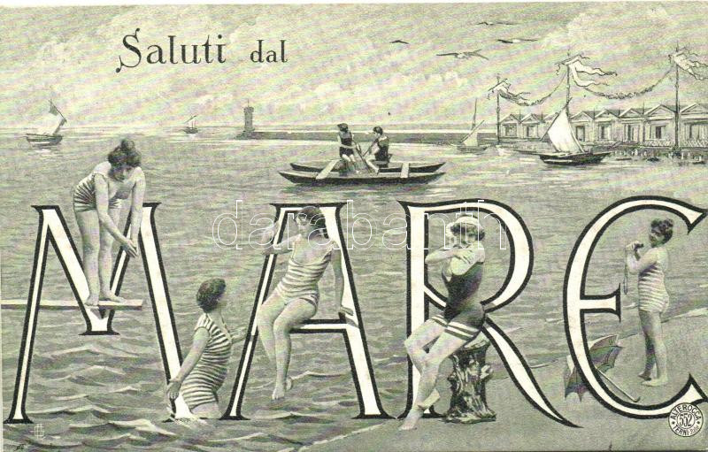 'Saluti dal Mare' / Greetings from the Sea, ladies in bathin... https://www.darabanth.com/de/265-Fernauktion/265.0/Ansichtskarten/Damen~300111/Saluti-dal-Mare-Greetings-from-the-Sea-ladies-in-bathing-suits~II1309335