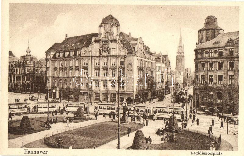 Hannover, Aegidientorplatz / Square with trams https://www.darabanth.com/de/265-Fernauktion/265.0/Ansichtskarten/Deutschland~300050/Hannover-Aegidientorplatz-Square-with-trams~II1236650