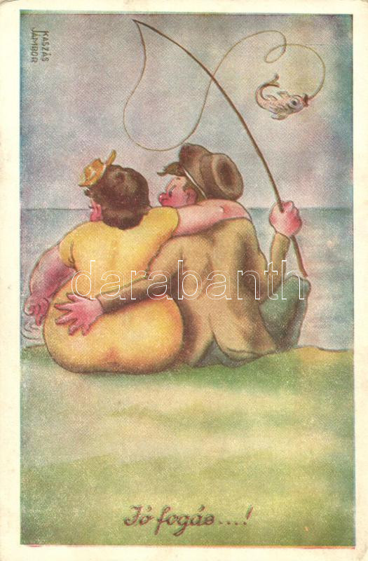 Jó fogás...! / Fishing couple humour s: Kaszás Jámbor (EB) https://www.darabanth.com/de/265-Fernauktion/265.0/Ansichtskarten/Humor~300112/Jo-fogas-Fishing-couple-humour-s-Kaszas-Jambor-EB~II1329120