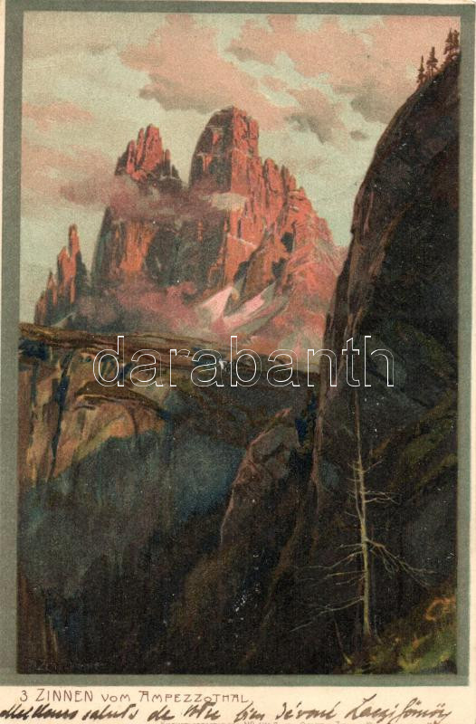 Tre Cime di Lavaredo, Drei Zinnen vom Ampezzothal;, Künstlerpostkarte ... https://www.darabanth.com/de/265-Fernauktion/265.0/Ansichtskarten/Italien~300054/Tre-Cime-di-Lavaredo-Drei-Zinnen-vom-Ampezzothal--Kunstlerpostkarte-No-1748-von-Ottmar-Zieher-~II1309371