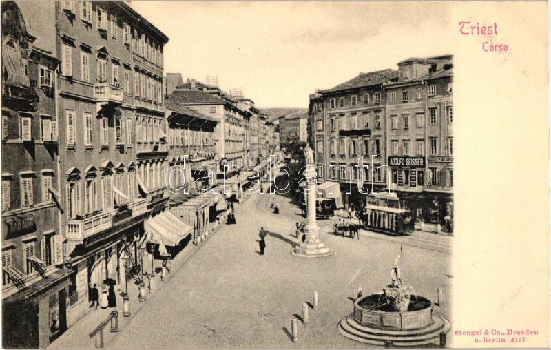 Trieste, Corso, tram, shop of Adolfo Seisser https://www.darabanth.com/de/265-Fernauktion/265.0/Ansichtskarten/Italien~300054/Trieste-Corso-tram-shop-of-Adolfo-Seisser~II1309179