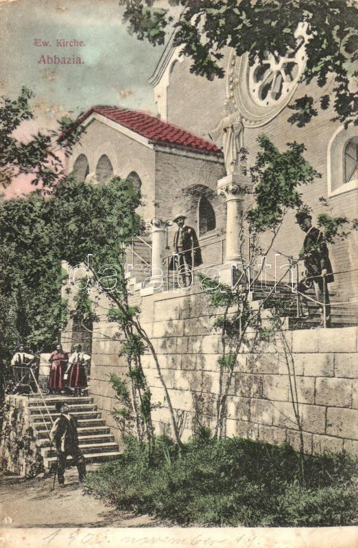 Abbazia, Ew. Kirche, Divald Károly 1282. / Evangelist church (fl) https://www.darabanth.com/de/265-Fernauktion/265.0/Ansichtskarten/Kroatien~300034/Abbazia-Ew-Kirche-Divald-Karoly-1282-Evangelist-church-fl~II1329923