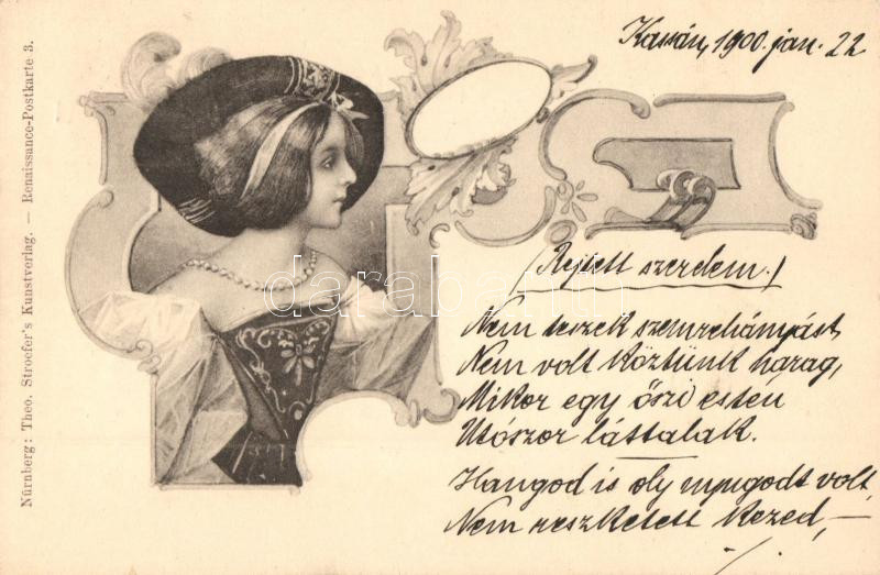 Beschreibung: Lady, Theo. Stroefer's Kunstverlag Renaissance-Postkarte 3., Art Nouveau