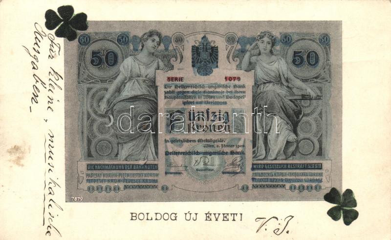 Fünfzig Kronen / New Year, bank note (fa) https://www.darabanth.com/de/265-Fernauktion/265.0/Ansichtskarten/Numismatik~300094/Funfzig-Kronen-New-Year-bank-note-fa~II1324724