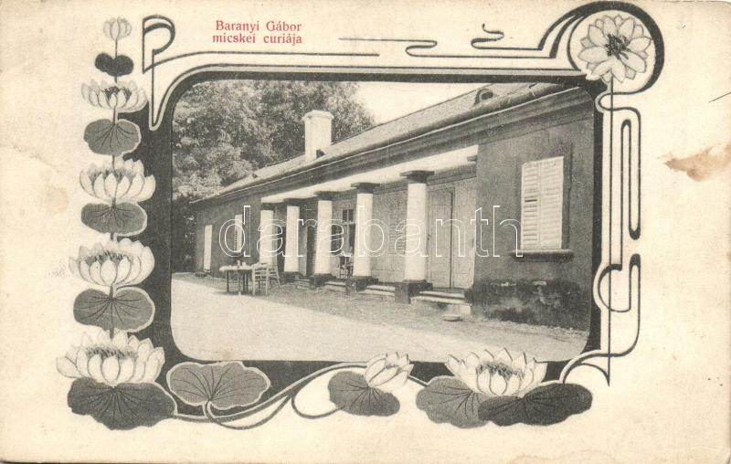 Micske, Misca; Baranyi Gábor kúriája / villa, Art Nouveau https://www.darabanth.com/de/265-Fernauktion/265.0/Ansichtskarten/Siebenburgen~300027/Micske-Misca-Baranyi-Gabor-kuriaja-villa-Art-Nouveau~II1326655