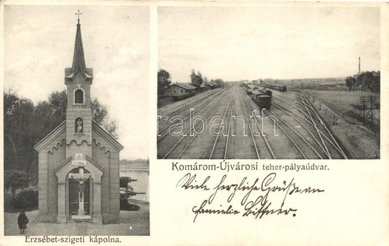 Beschreibung: Komárom-Újváros, Erzsébet szigeti kápolna, teher-pályaudvar. Kiajda Sipos F. / chapel, cargo railway station