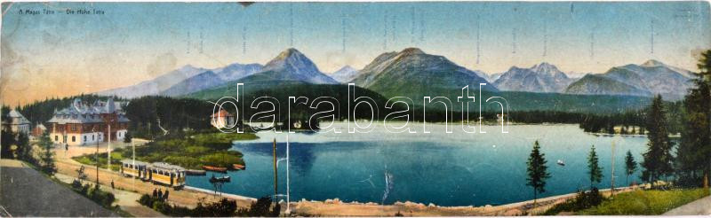 Beschreibung: Tátra Csorba-tó, villamos; óriási hajtatlan panoráma képeslap / giant panoramacard (b)