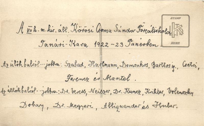 1923 Budapest VII. a Körösi Csoma Sándor Főreáliskola tanári kara, a h... https://www.darabanth.com/de/265-Fernauktion/265.0/Ansichtskarten/Ungarn~300059/1923-Budapest-VII-a-Korosi-Csoma-Sandor-Forealiskola-tanari-kara-a-hatoldalon-a-tanarok-nC3~II1321648