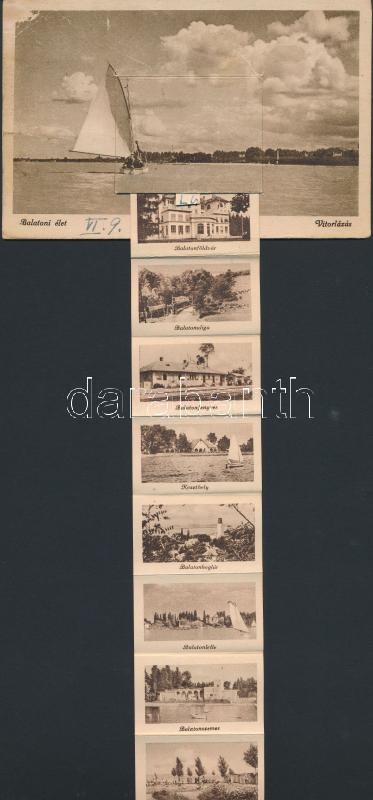 Balaton, vitorlázás, leporellolap (EK) https://www.darabanth.com/de/265-Fernauktion/265.0/Ansichtskarten/Ungarn~300059/Balaton-vitorlazas-leporellolap-EK~II1281908