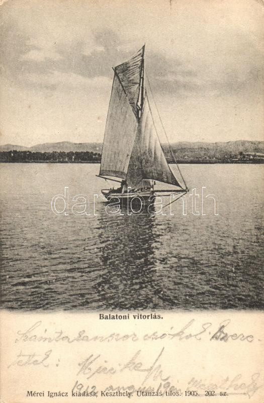 Balatoni vitorlás, kiadja Mérei Ignácz (EK) https://www.darabanth.com/de/265-Fernauktion/265.0/Ansichtskarten/Ungarn~300059/Balatoni-vitorlas-kiadja-Merei-Ignacz-EK~II1328314