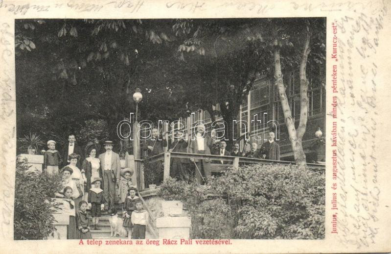 Beschreibung: Budapest II. Hűvösvölgy, Holtzspach Orrvadász üdülőhely, Telep zenekara az öreg Rácz Pali vezetésével (r)