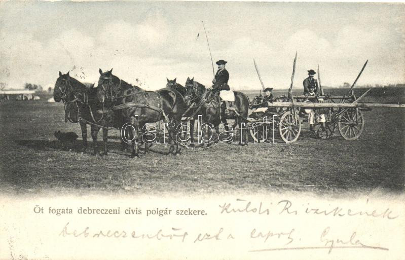 Debrecen, Öt fogatú civis polgár szekér https://www.darabanth.com/de/265-Fernauktion/265.0/Ansichtskarten/Ungarn~300059/Debrecen-Ot-fogatu-civis-polgar-szeker~II1324609