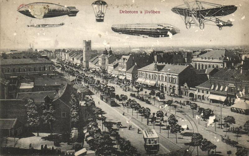 Debrecen a jövőben, léghajó, villamos, repülőgép, Korona Szálló, kiadj... https://www.darabanth.com/de/265-Fernauktion/265.0/Ansichtskarten/Ungarn~300059/Debrecen-a-jovoben-leghajo-villamos-repulogep-Korona-Szallo-kiadja-a-Konya-dohanyto~II1328463