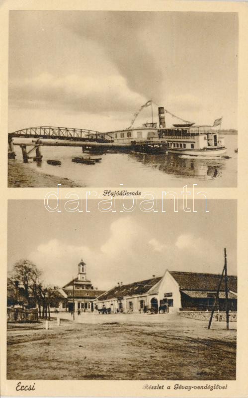 Beschreibung: Ercsi, Hajóállomás, Gévay-vendéglő, kiadja a Köln Károly dohányáruda (EK)
