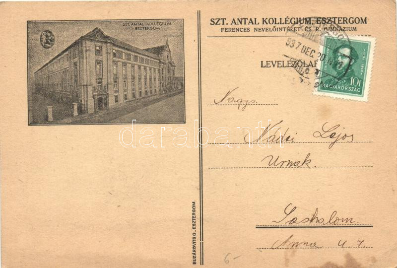 Esztergom, Szent Antal Kollégium (EK) https://www.darabanth.com/de/265-Fernauktion/265.0/Ansichtskarten/Ungarn~300059/Esztergom-Szent-Antal-Kollegium-EK~II1325557